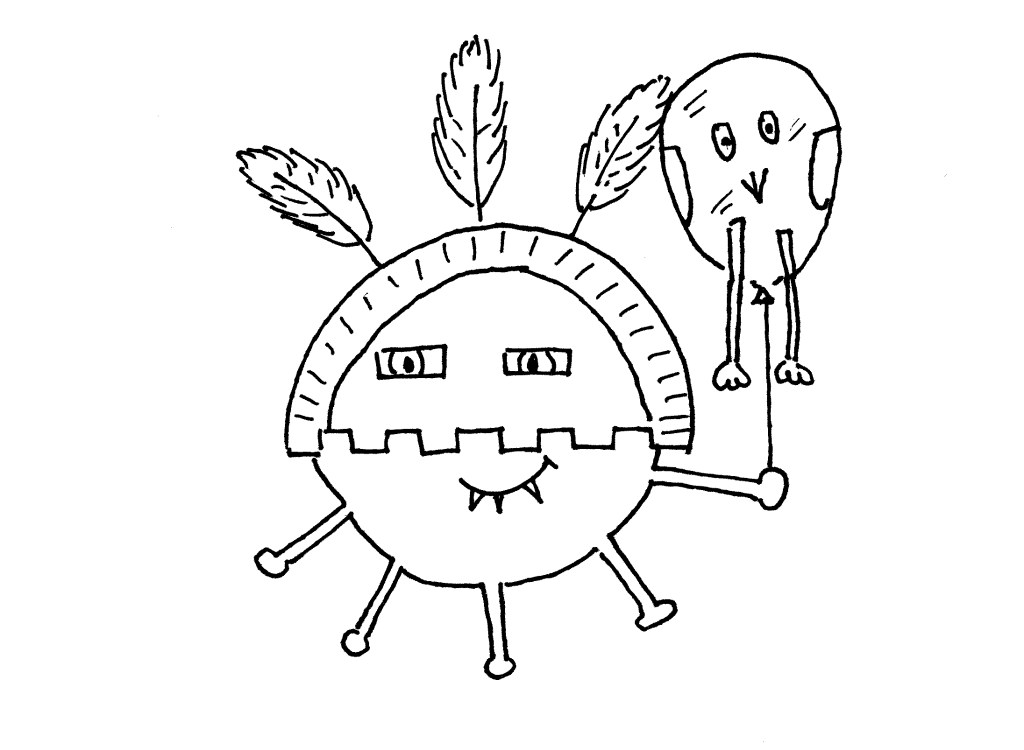 Then on to the mask. Vicky goes to town on hers, starting with half a paper plate and turning it into an Aztec-come-shaman creation. I thought of leaving it blank, so it looked like a PPE mask. Bit of a cheat. But I couldn’t resist putting a big toothy grin on it with a black marker pen and produced something deeply disturbing and certainly not Easter-like.